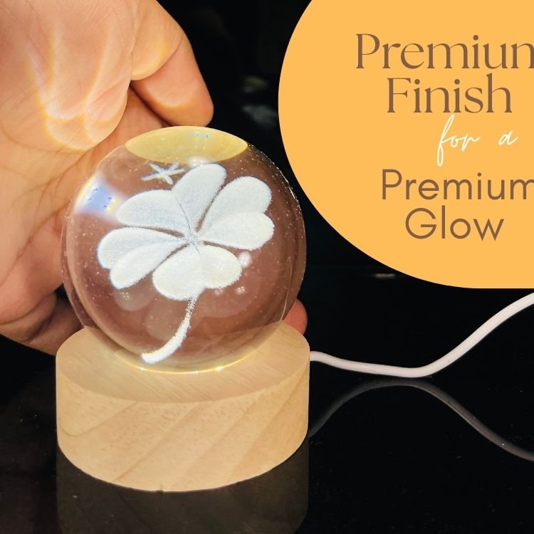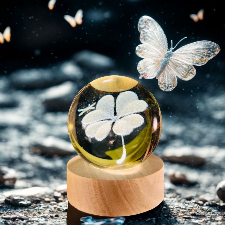 3D Crystal Ball Night Light with Wooden Base,(Flower)