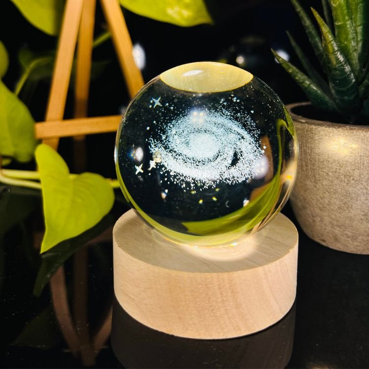 3D Crystal Ball Night Light with Wooden Base,(Milky Way)