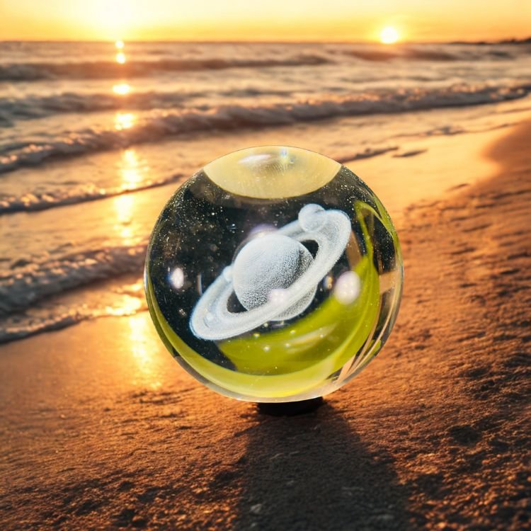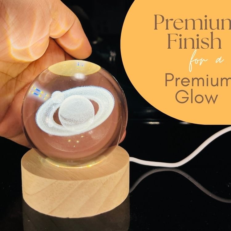 3D Crystal Ball Night Light with Wooden Base,(Saiturn)