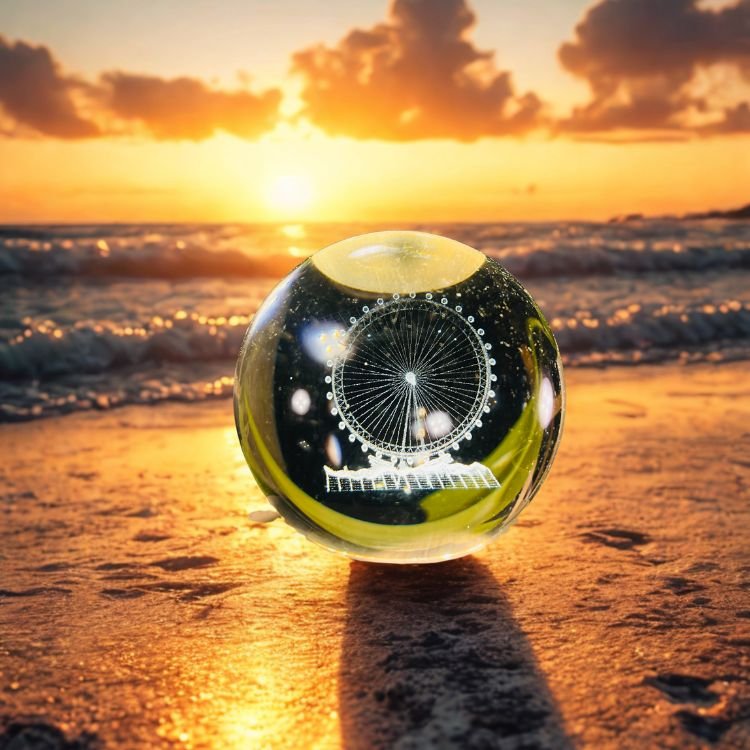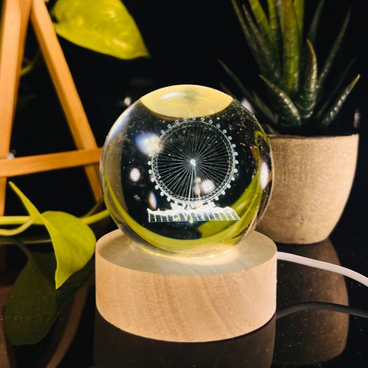 3D Crystal Ball Night Light with Wooden Base,(Wheel)