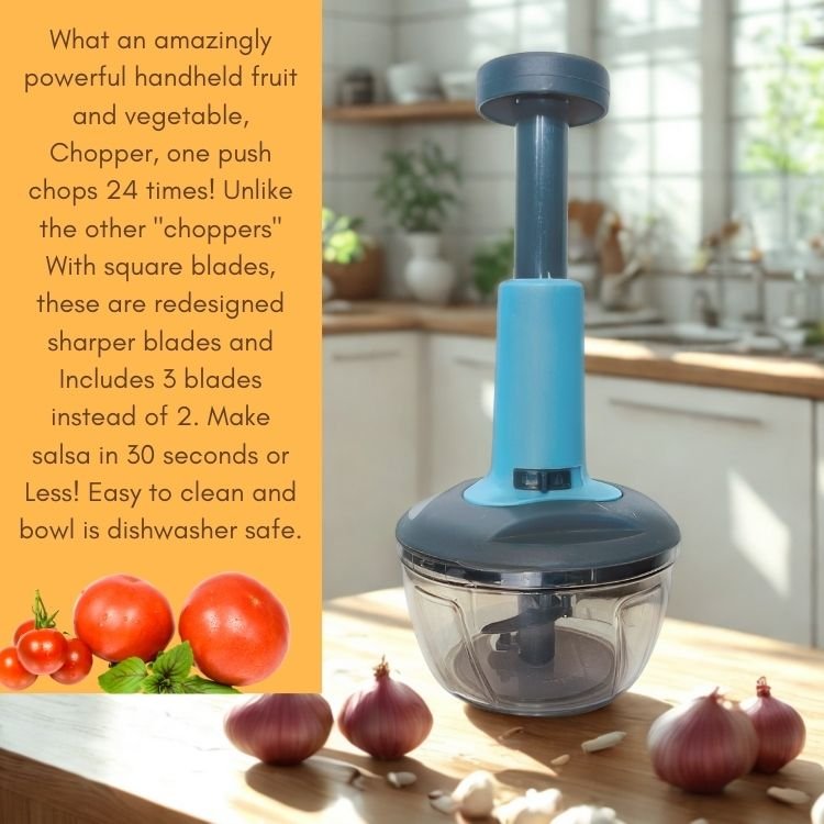 • One Push, Perfect Chops – Just press down and let the ultra-sharp stainless-steel blades do the work.