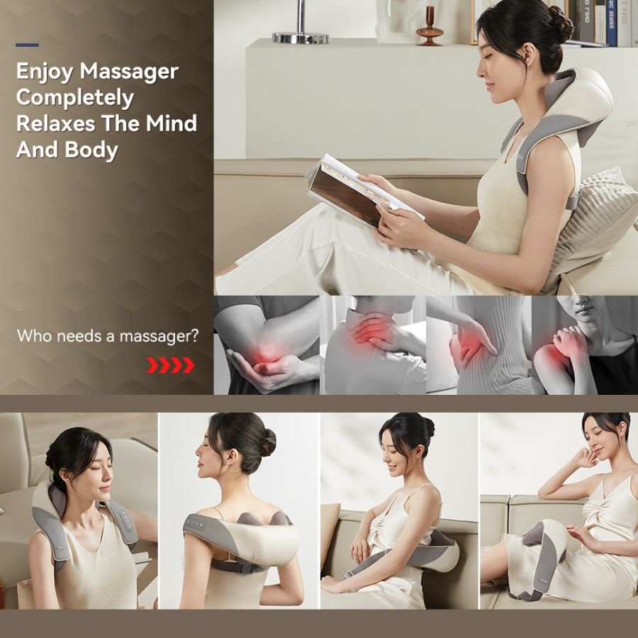 - The neck massager is powered by a rechargeable lithium-ion battery, so there’s no need to plug it in when you use it. Enjoy up to 70-80 minutes of relaxing massage on a single charge! Let you enjoy a relaxing massage anytime, anywhere, no longer bound by wires.